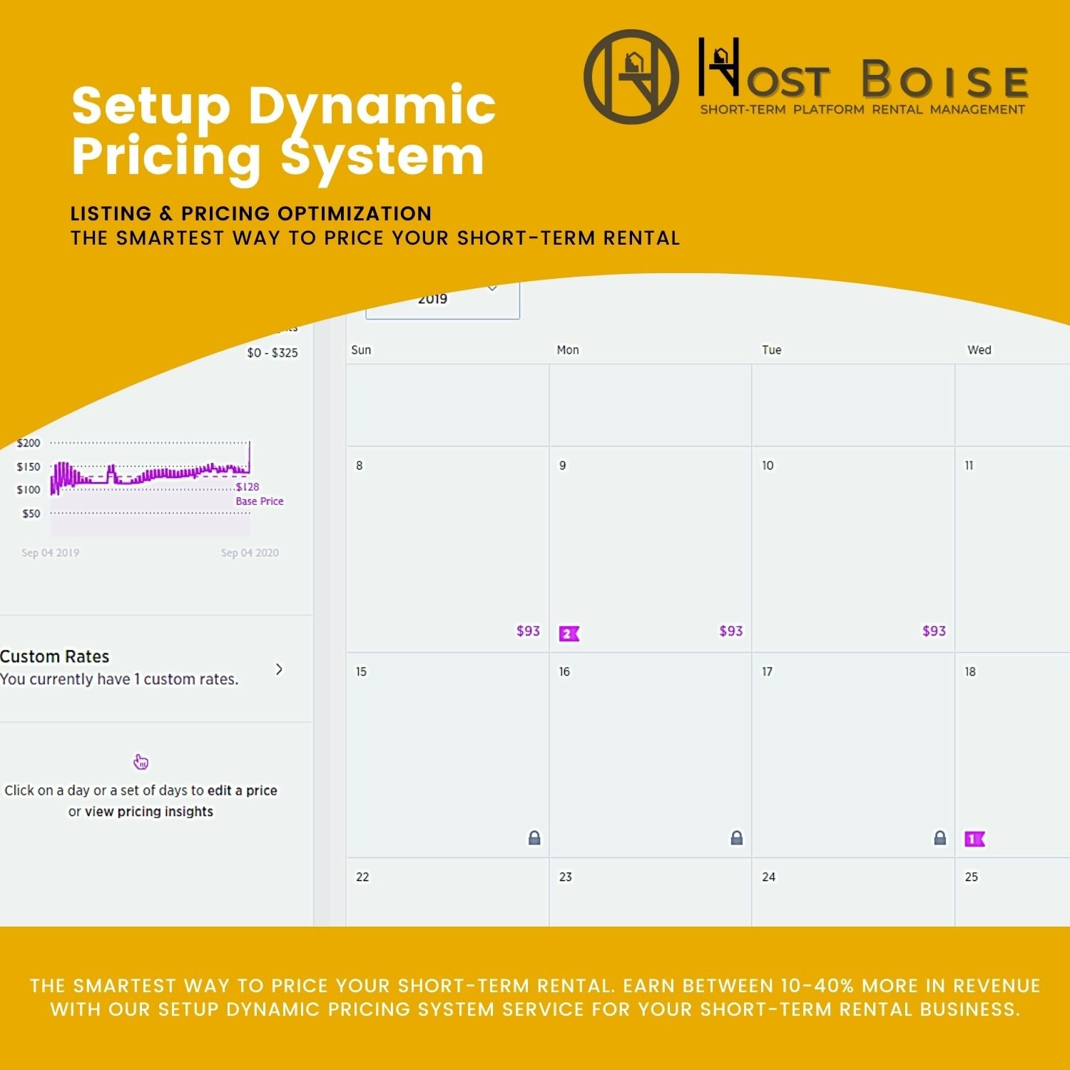 Earn between 10-40% more in revenue with our local data-driven pricing software. Our dynamic pricing model allows us to update your home's unique daily rates, adjusting for price based on seasonal demand, inquiry activity, comparable home prices, events in the area, nearby hotels, actual reservations and even competitor homes and their booking frequencies and amounts.